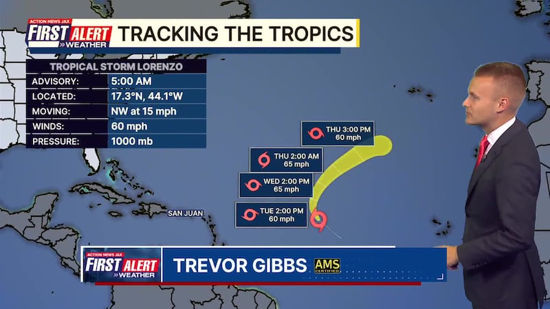 - Lorenzo continues to move across the central tropical Atlantic. It will stay thousands of miles away from the United States.