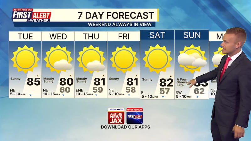 JACKSONVILLE, Fla. — This morning is clear and quiet with temperatures in the 50s and 60s.