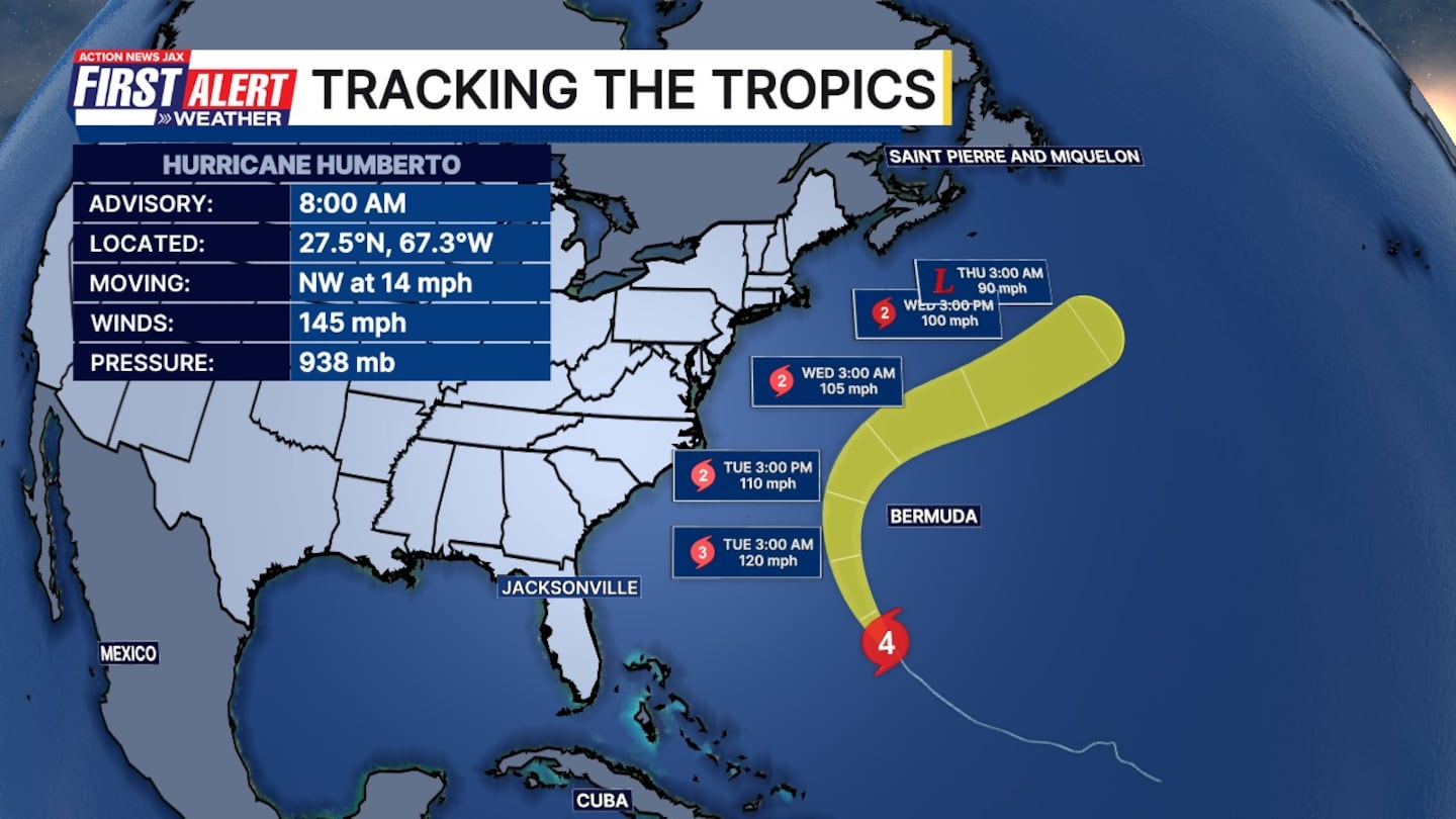 Hurricane Humberto remains a Category 4 storm, but is expected to weaken over the next few days.
