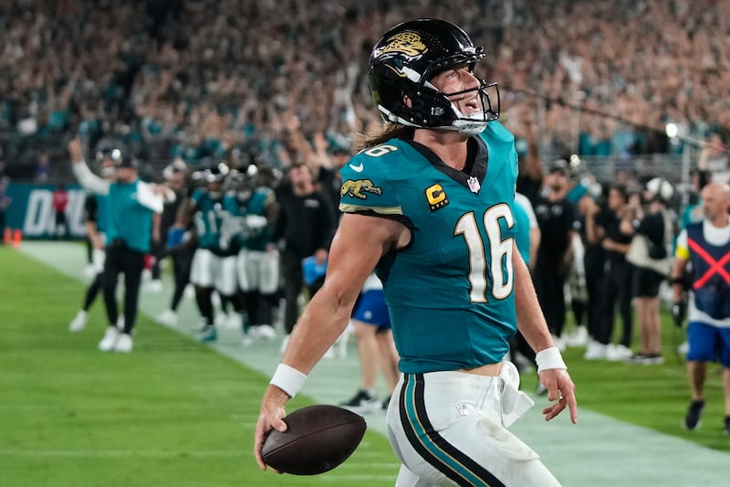 He was perfect when it mattered most for the Jaguars. Lawrence dropped a precision pass to Brian Thomas Jr. for a 33-yard gain on the go-ahead drive and then hit Dyami Brown for another big gain. Chamarri Conner was flagged for pass interference against Thomas on the next play, setting up Lawrence’s trip and score.