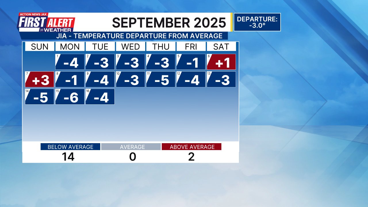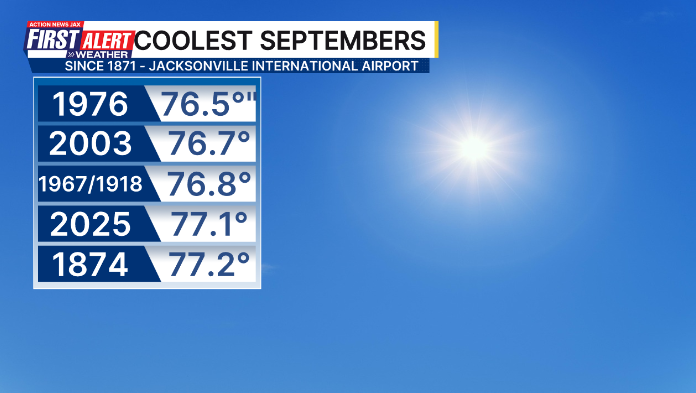 And we’ve had an early taste of fall so far this September. In fact - through the 15th of the month - Sept. is the 5th coolest on record in Jacksonville: