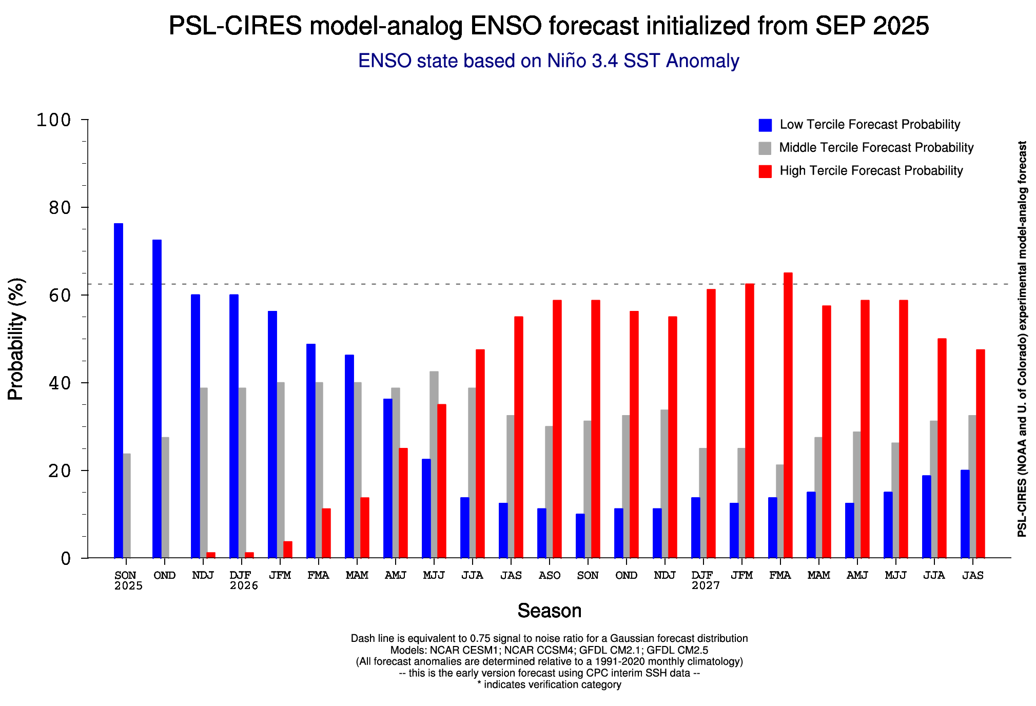 There are hints of a *possible* quick switch to an El Nino (warming of the equatorial Pacific) late next spring into the following summer, but it’s worth noting long range forecast models have been known to struggle with forecasting ENSO (La Nino or El Nino) conditions.