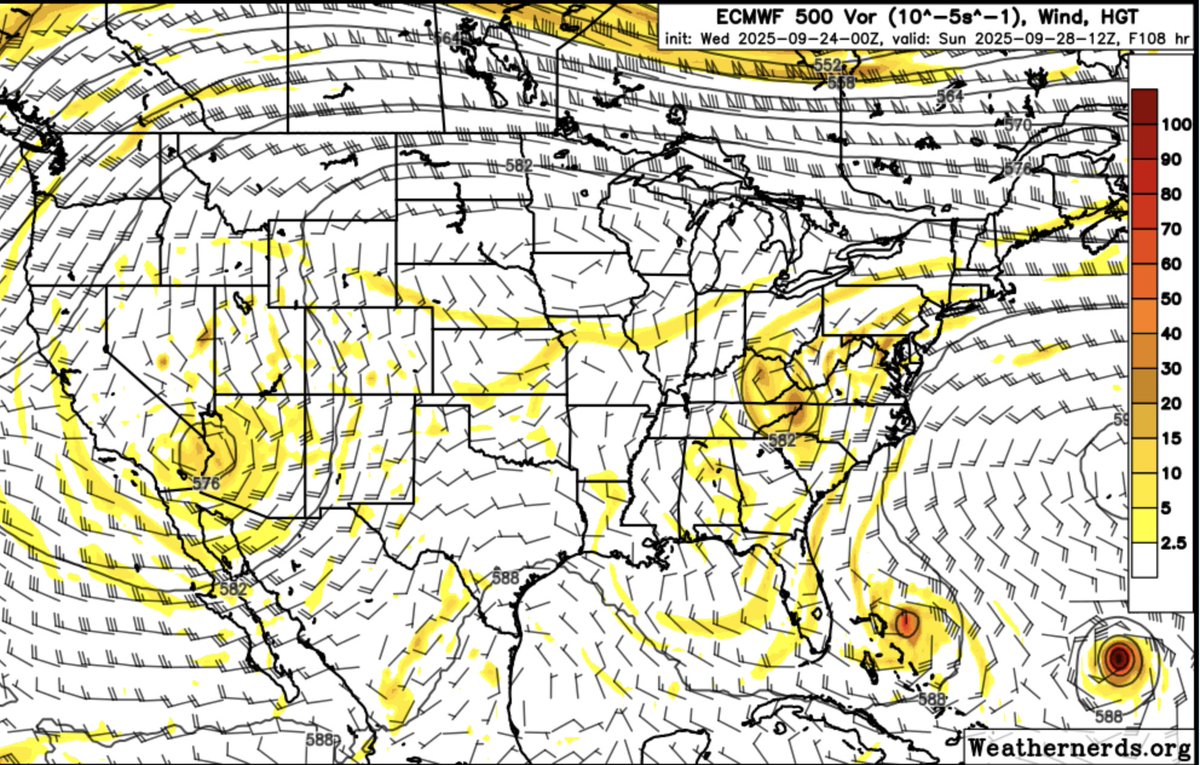 Two active tropical waves deserve a lot of attention & *may* eventually (next week sometime) have at least some impacts on the U.S. These two waves are in relatively close proximity & may interact with one another by early next week. In fact, the global forecast models seem to sometimes merge the two waves while in other model runs they just entirely lose one of the systems... & still in other model runs maintain two distinct systems. The GFS model seems to be particularly inconsistent & has had a tendency to merge 94-L with Humberto to the east. Most other global forecast models keep the two systems separate with 93-L uncomfortably close to the Bahamas early next week. How exactly these systems move - especially 94-L - will be largely modulated by an upper level trough over the Eastern U.S. This trough could either sling-shot 94-L to the west & into the U.S. east coast from Ga. to the Carolina’s or swing the disturbance more out to the east. It will be a while yet - perhaps 3+ days - before this complicated steering pattern becomes well established & more predictable. NOAA & the N.W.S. is trying to help out the forecast models by launching extra weather balloons from Florida to the Mid-Atlantic into the weekend (including Jacksonville N.W.S.) as well as special hurricane recon missions to sample the weather environment over & near the Caribbean & Southwest Atlantic.